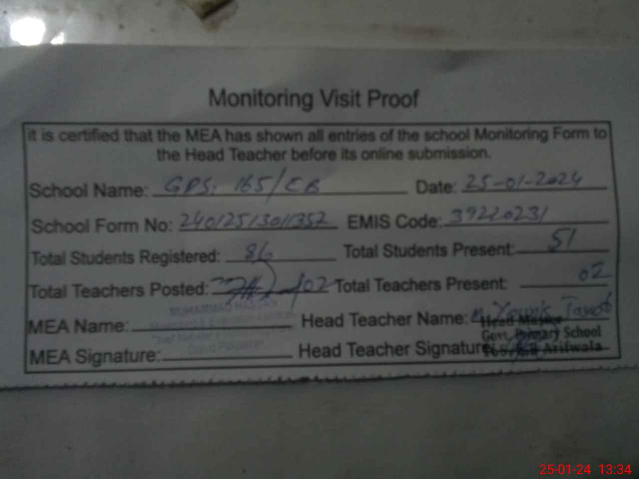 | EMIS Code: 39220231 | Name of School: GPS 165 EB P.O 163 E.B ARIF WALA | |||