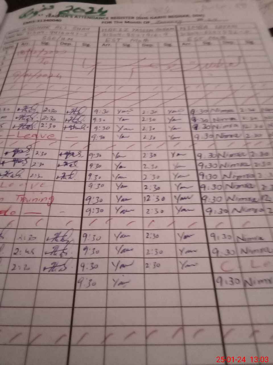 | CNIC | Full Name | Designation | R/C | Absence during last cal. month |