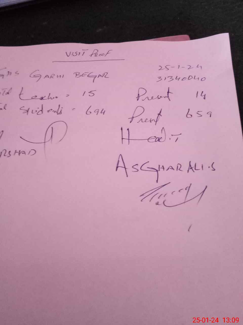 | Name: As**** Al**** Sh**** Designation: (School Headmaster's/Headmistress's) S.S E Phone/Cell Number: 03**** |