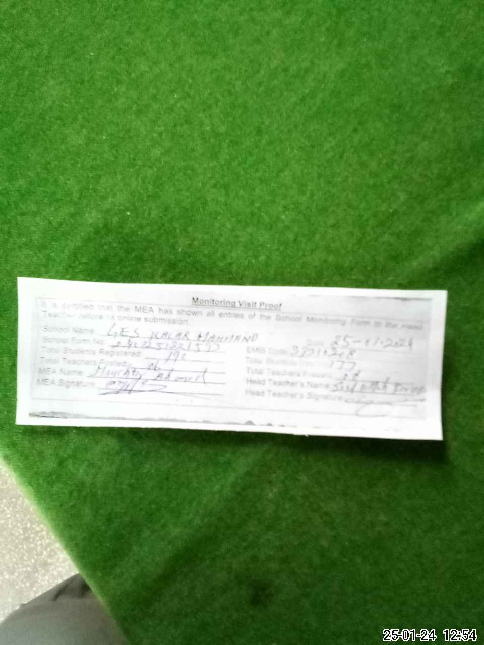 | Attendance Register | Head Teacher | MEA with School | Visit Proof |