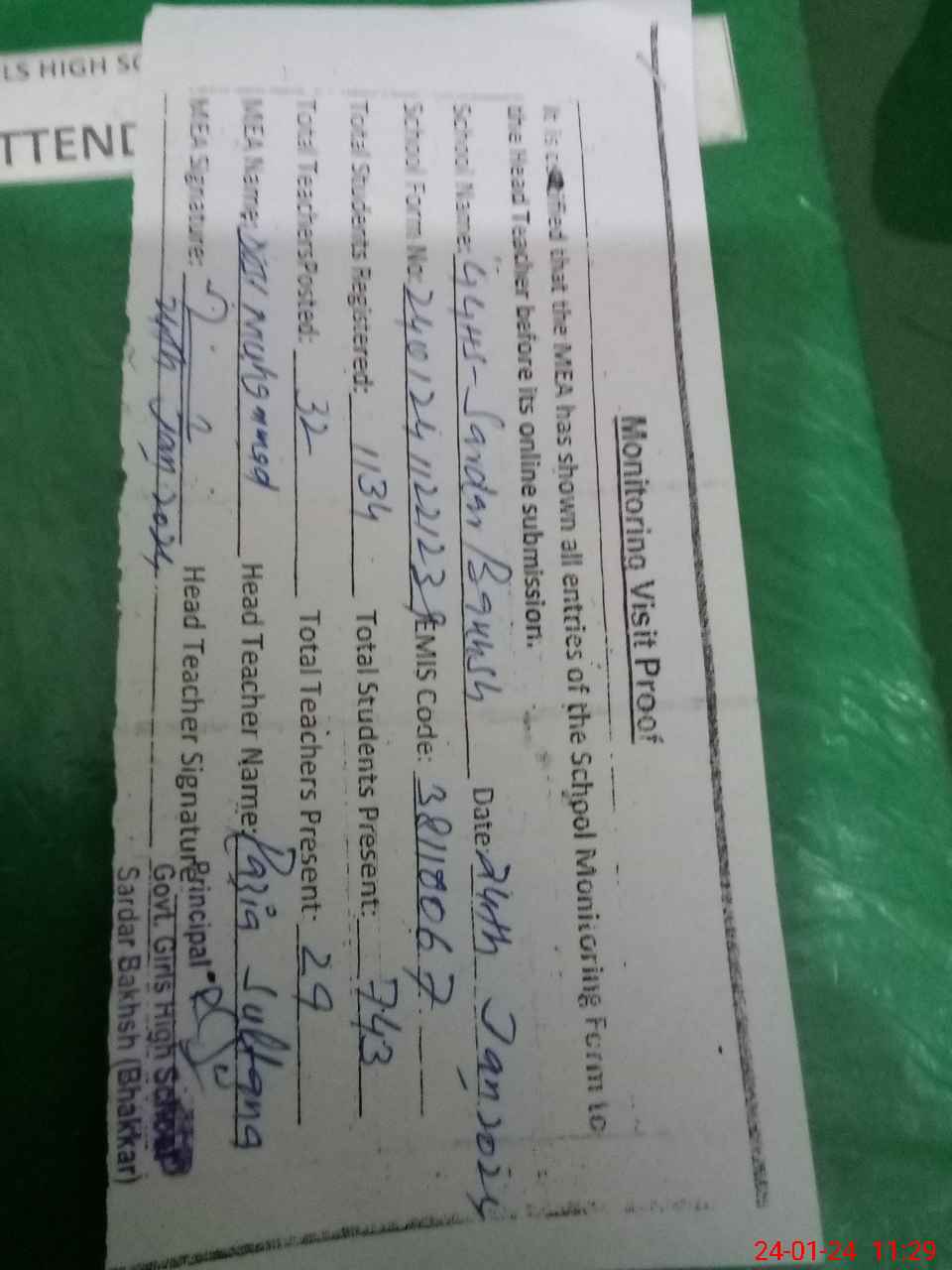 | EMIS Code: 38110067 | Name of School: GGHS SARDAR BAKHSH | |||