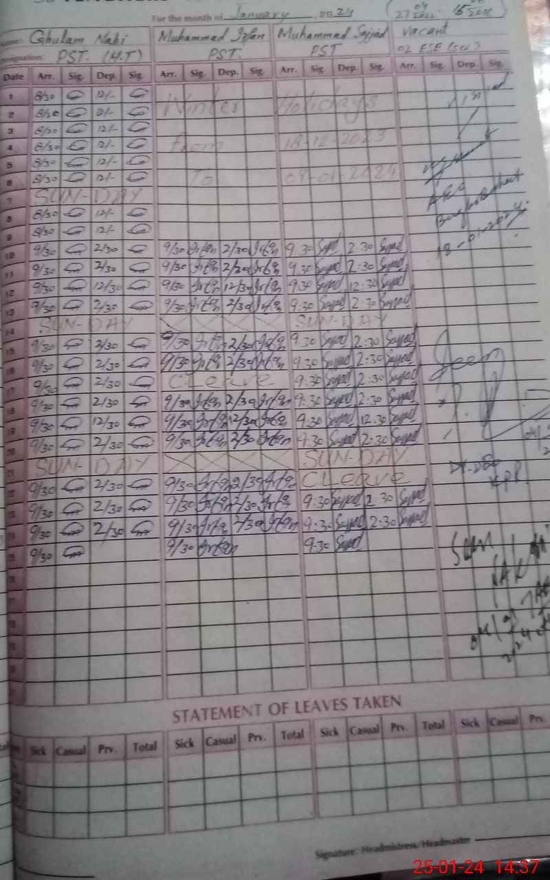 | CNIC | Full Name | Designation | R/C | Absence During Last Calender Month |