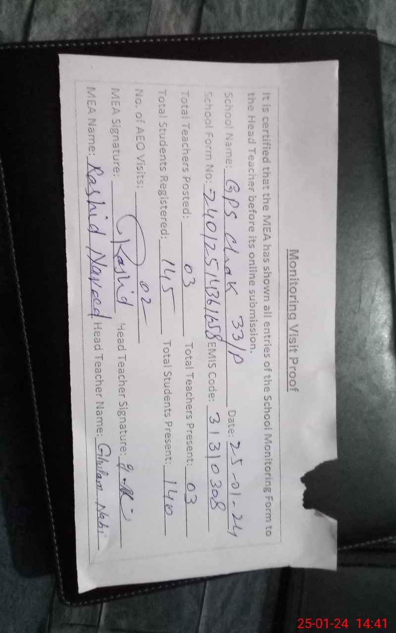 | Attendance Register | Head Teacher | MEA with School | Visit Proof |