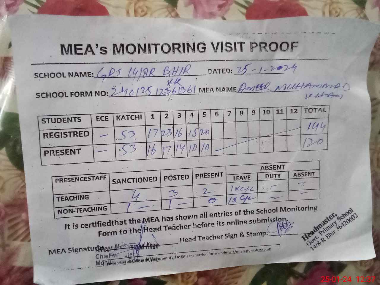 | EMIS Code: 36420602 | Name of School: GPS 14/8-R BHIR, KACHA KHUH | |||