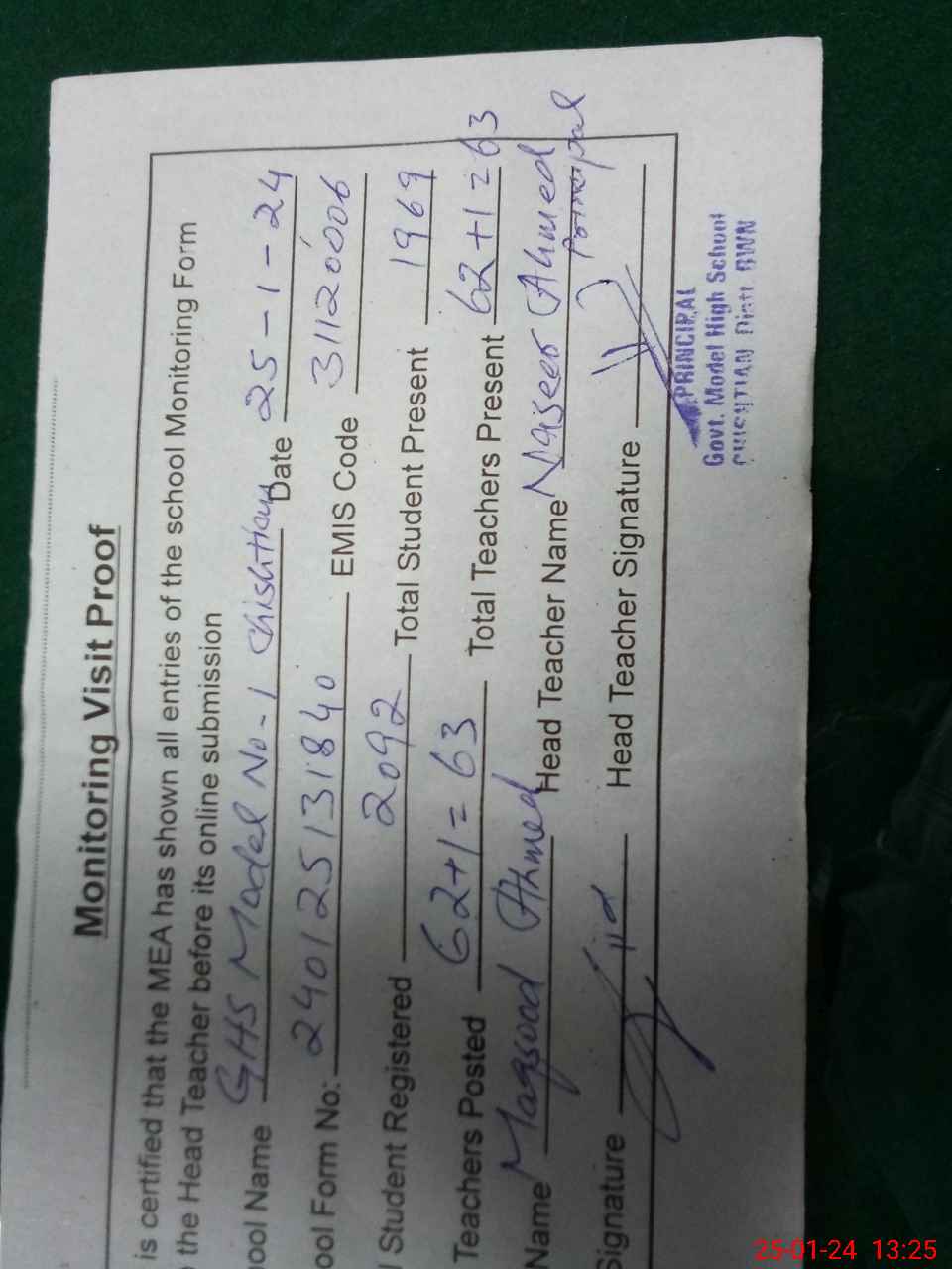 | EMIS Code: 31120006 | Name of School: GHS MODEL NO. 1 CHISHTIAN | |||