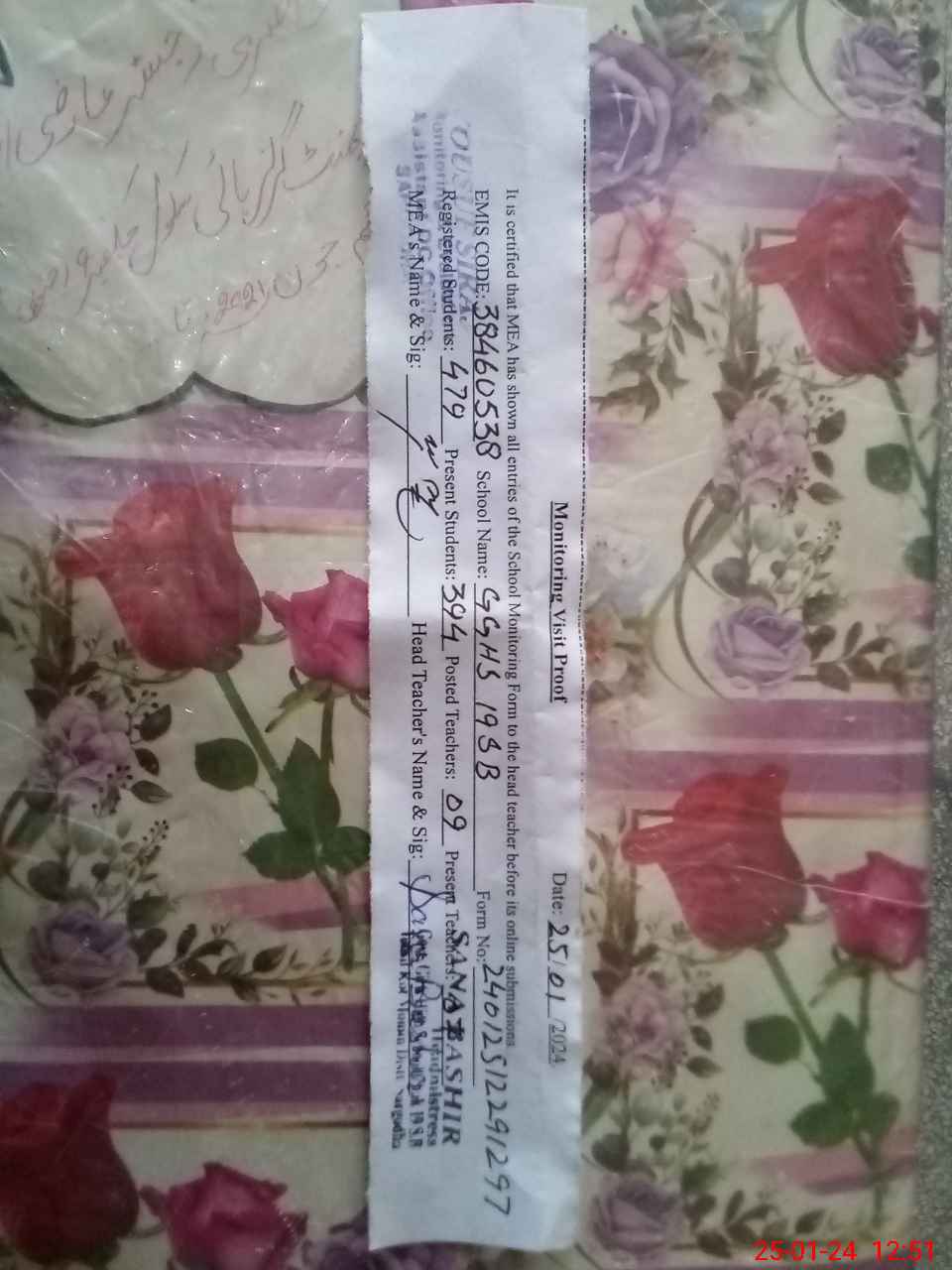 | Certified that this School was Inspected by the Undersigned MEA/DMO Today and the Information Stated Above is as Per Record. | |||||