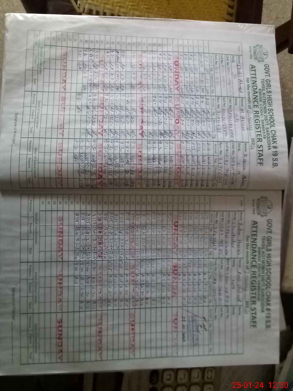 | Name: SA**** BA**** Designation: (School Headmaster's/Headmistress's) SST SCIENCE (HEADMISTRESS) Phone/Cell Number: 03**** |