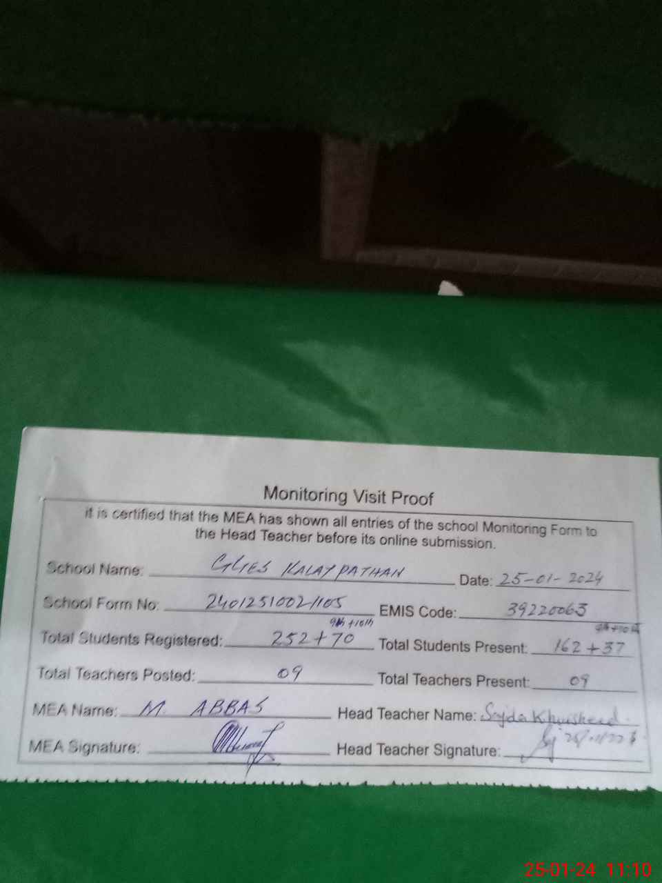 | EMIS Code: 39220063 | Name of School: GGES KALAY PATHAN | |||