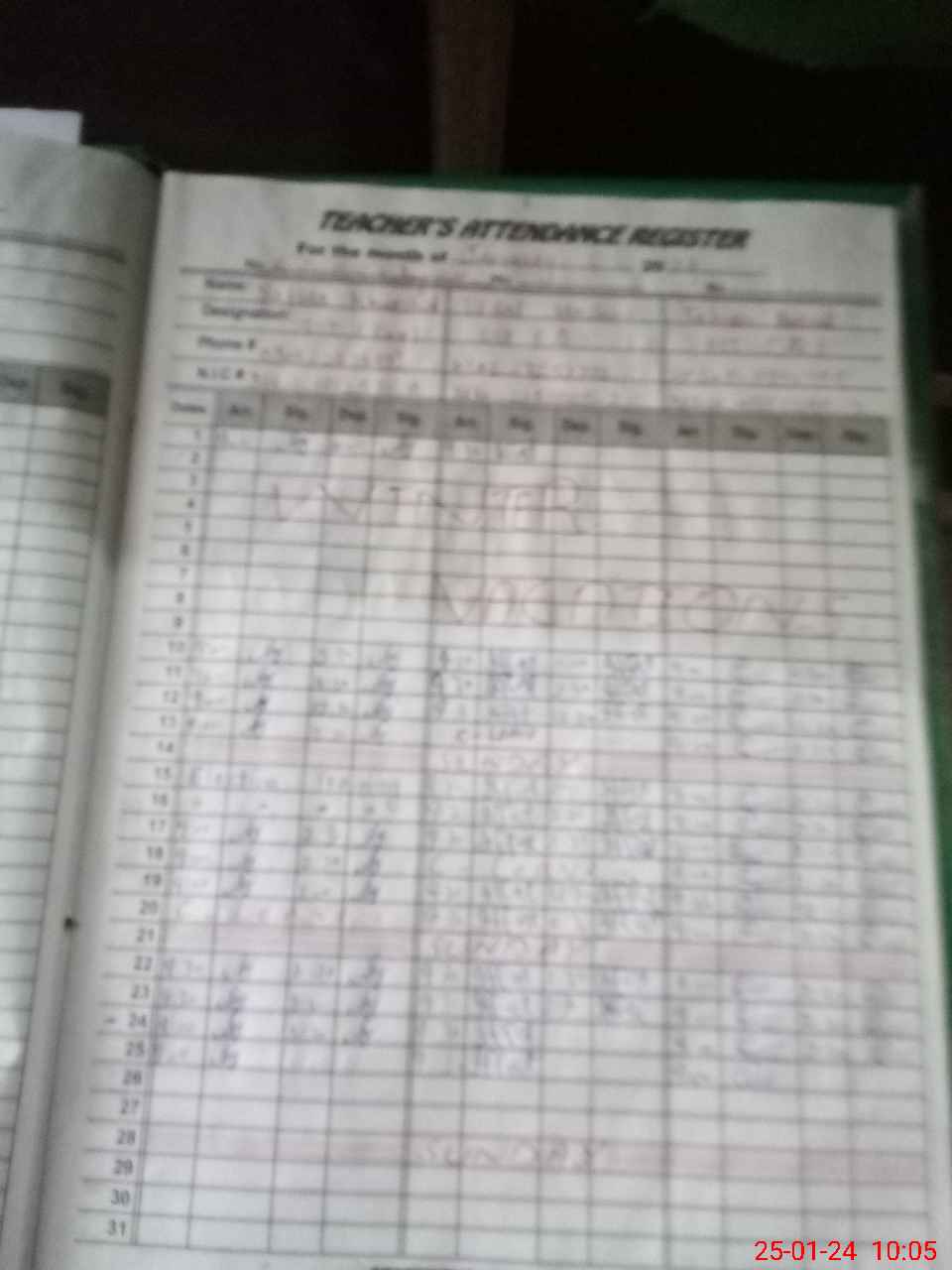| CNIC | Full Name | Designation | R/C | Absence During Last Calender Month |