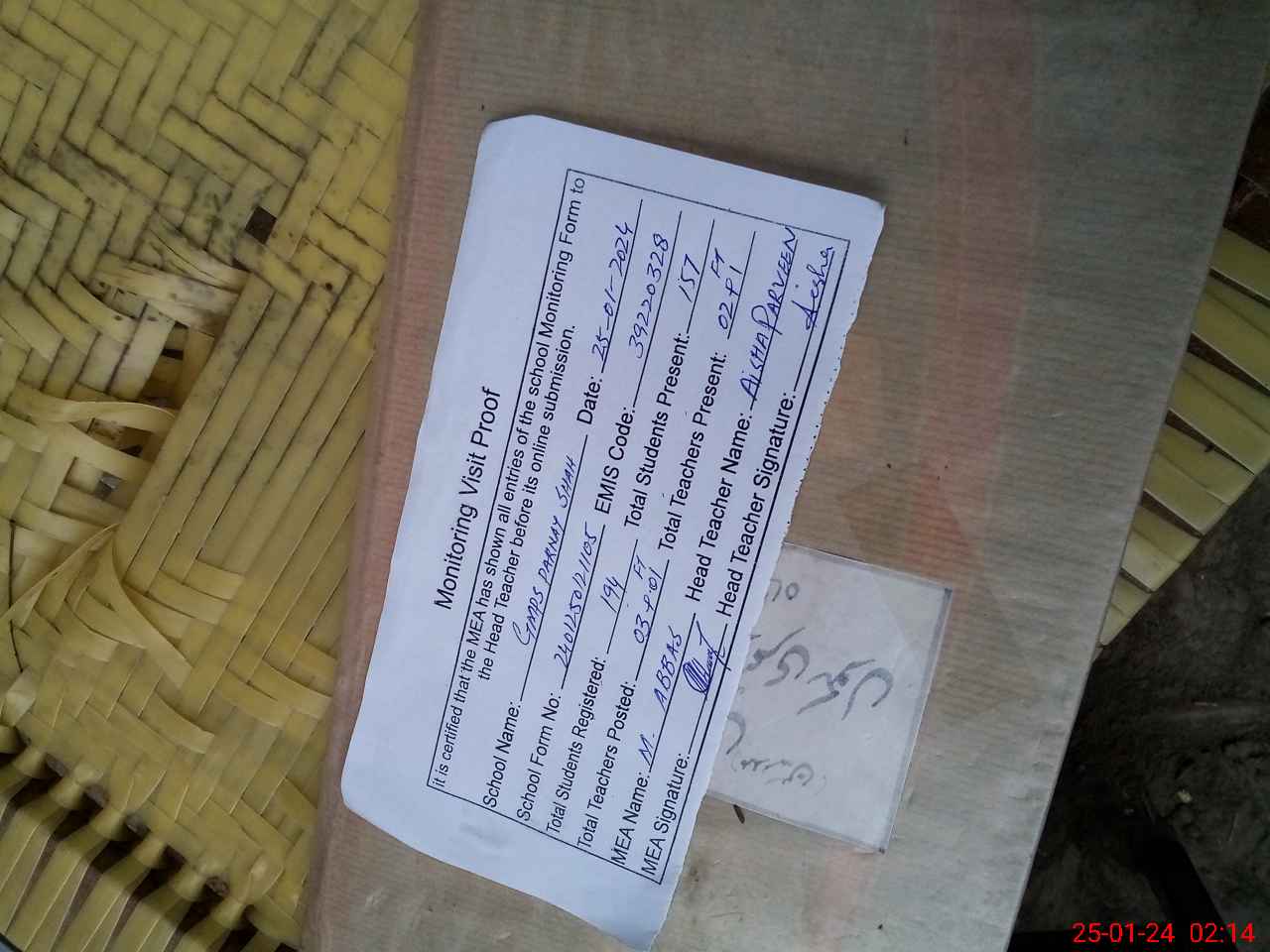 | Attendance Register | Head Teacher | MEA with School | Visit Proof |