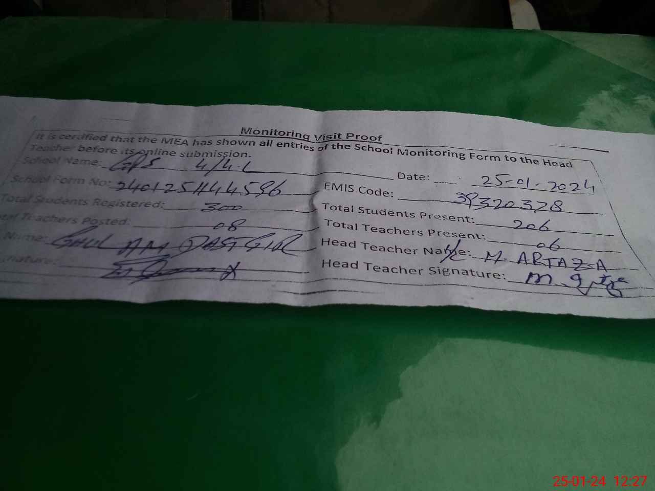 | EMIS Code: 39320378 | Name of School: GPS CHAK 4/4-L | |||