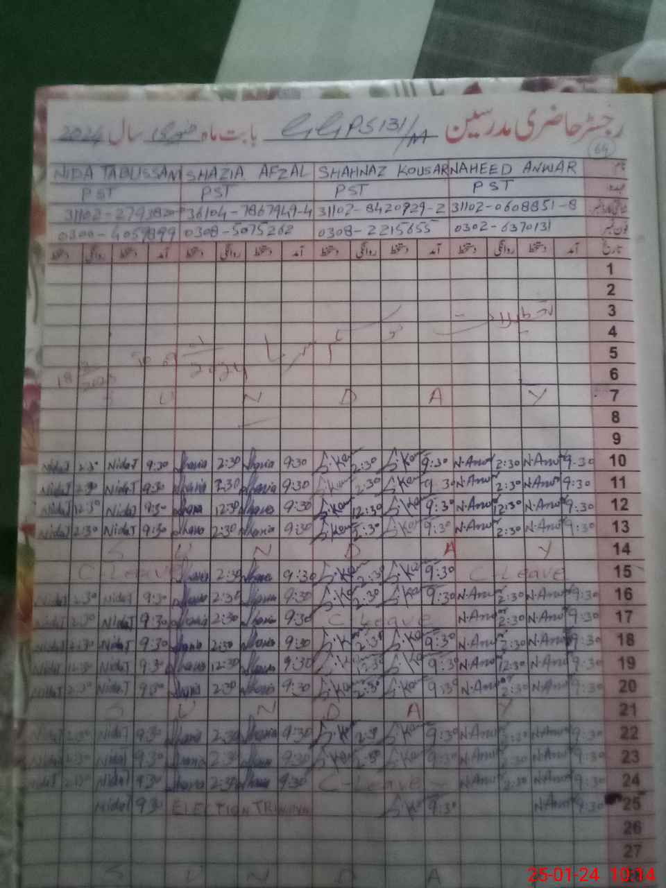 | Name: Sh**** Af**** Designation: (School Headmaster's/Headmistress's) PST Phone/Cell Number: 03**** |