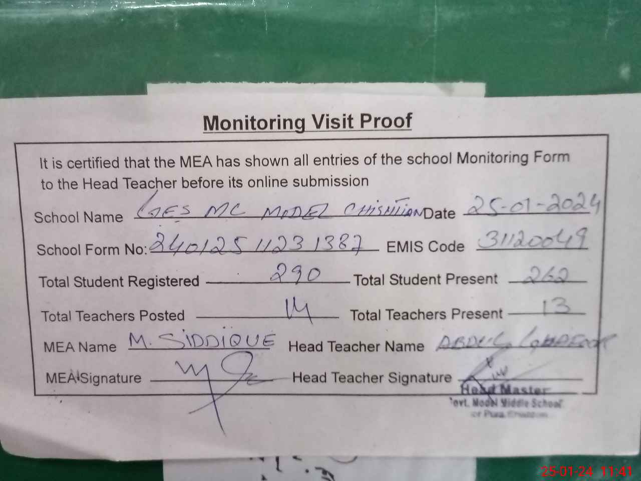 | EMIS Code: 31120049 | Name of School: GES MC MODEL CHISHTIAN | |||