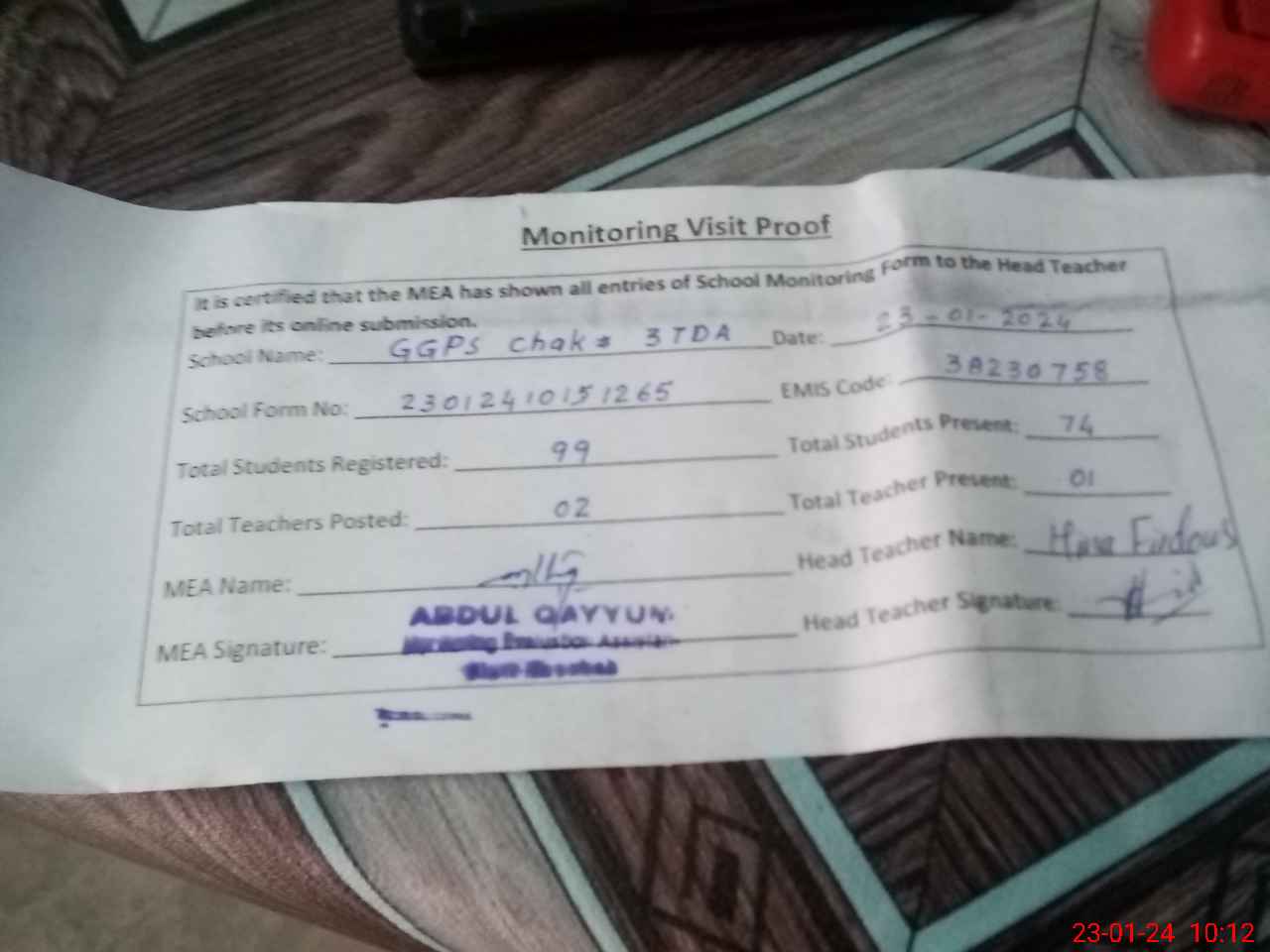 | EMIS Code: 38230758 | Name of School: GGPS CHAK NO 3 TDA | |||