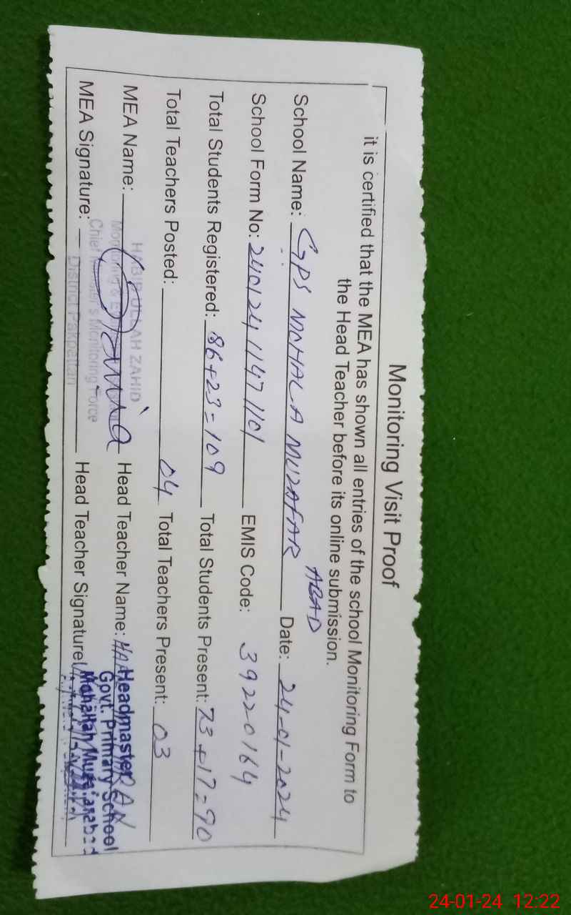 | EMIS Code: 39220164 | Name of School: GPS MOHALA MUZAFFAR ABAD | |||