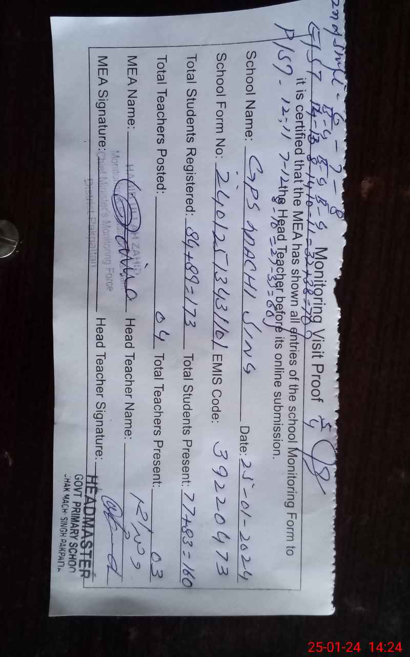 | EMIS Code: 39220473 | Name of School: GPS CHAK MACHI SINGH | |||