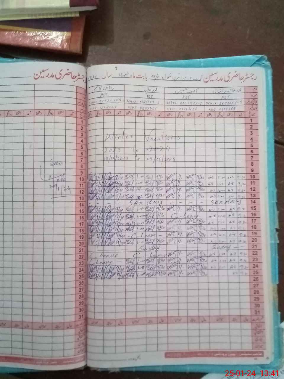 | CNIC | Full Name | Designation | R/C | Absence During Last Calender Month |