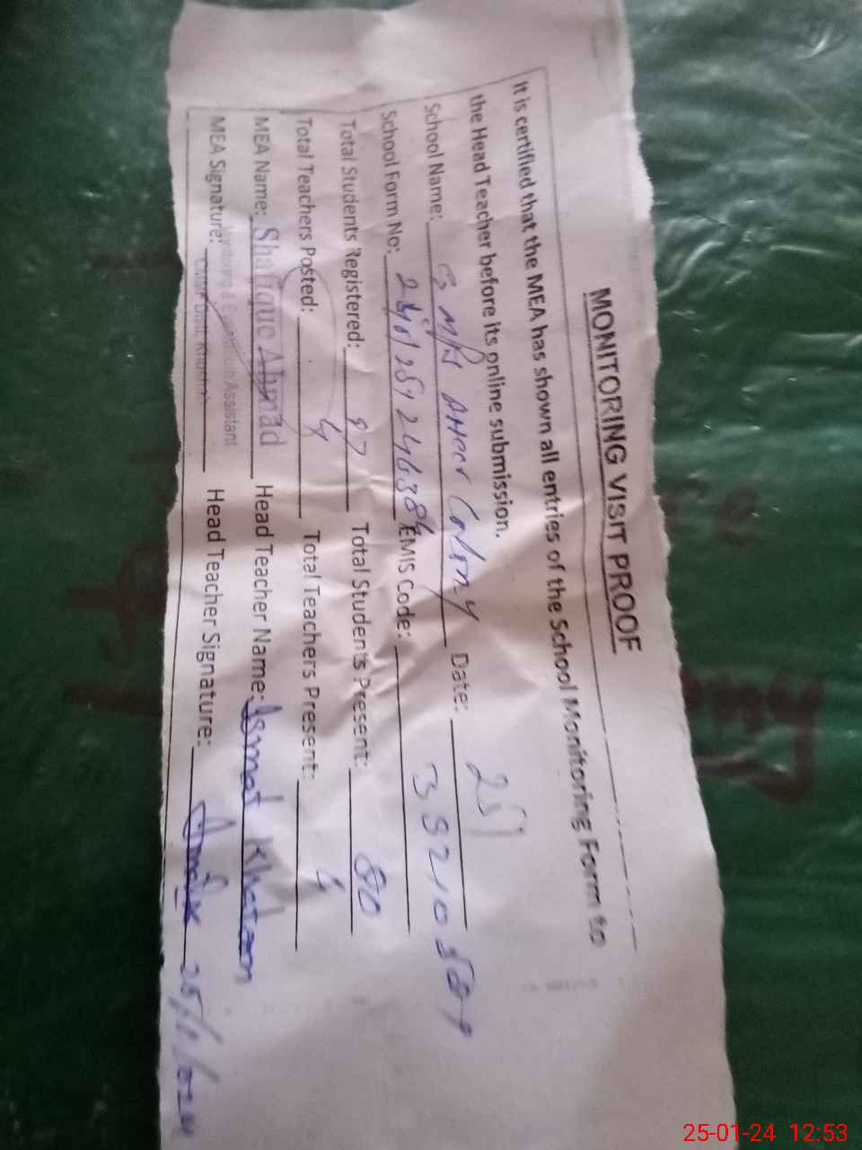 | EMIS Code: 38210589 | Name of School: GMPS AHEER COLONY | |||