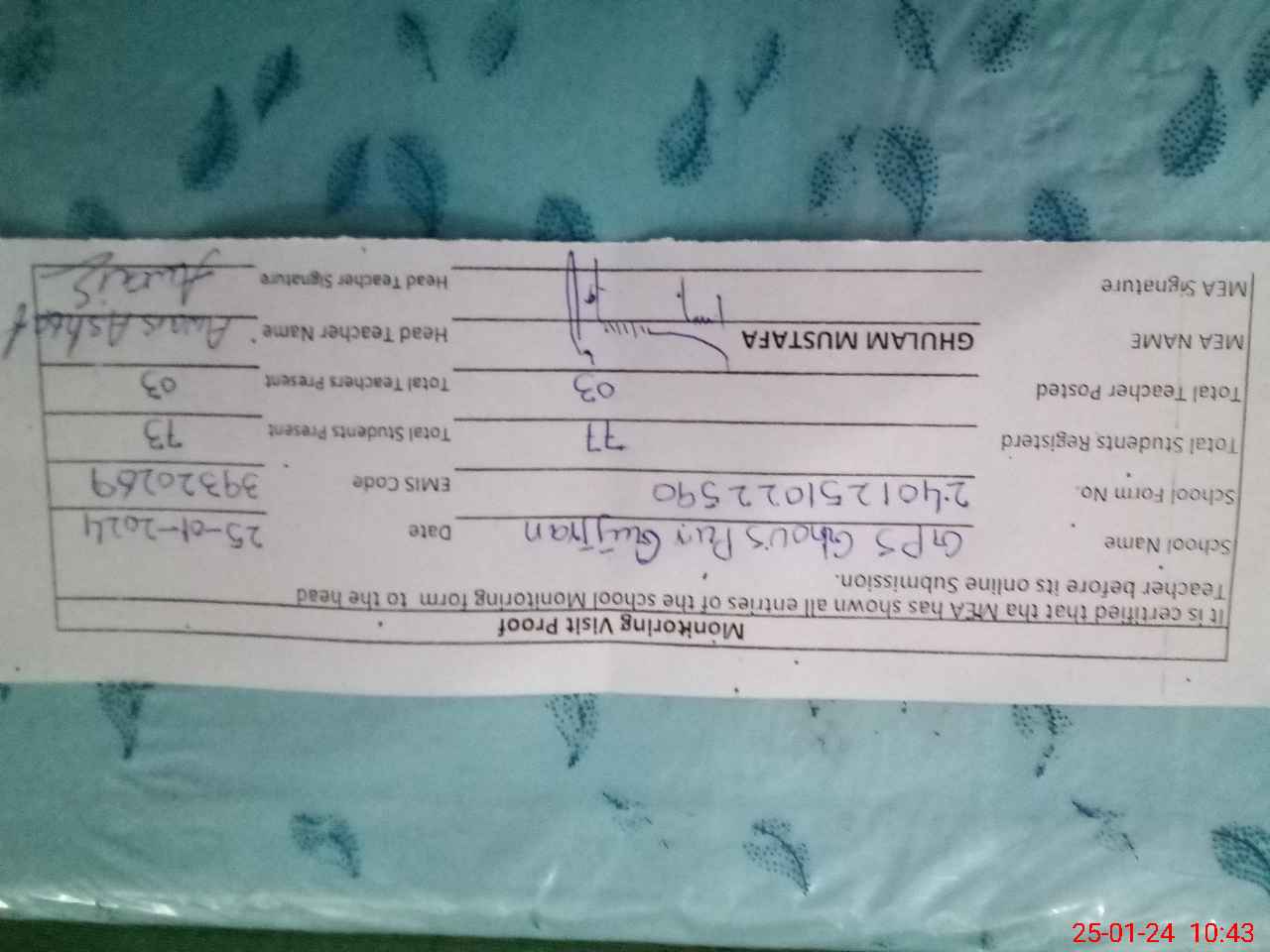 | Name: Mu**** Ak**** Designation: (School Headmaster's/Headmistress's) PST Phone/Cell Number: 03**** |