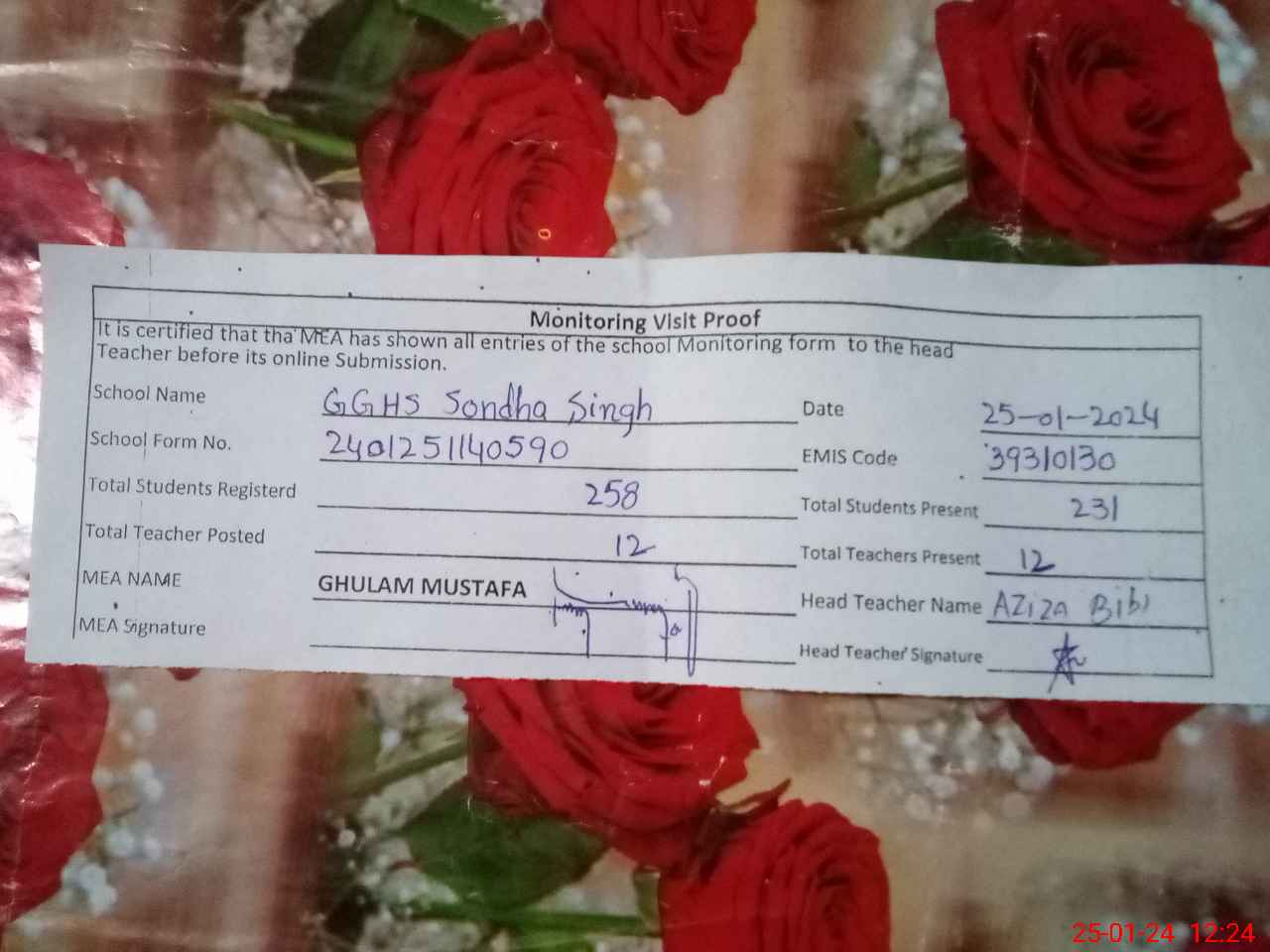 | EMIS Code: 39310130 | Name of School: GGHS SONDHA SINGH | |||