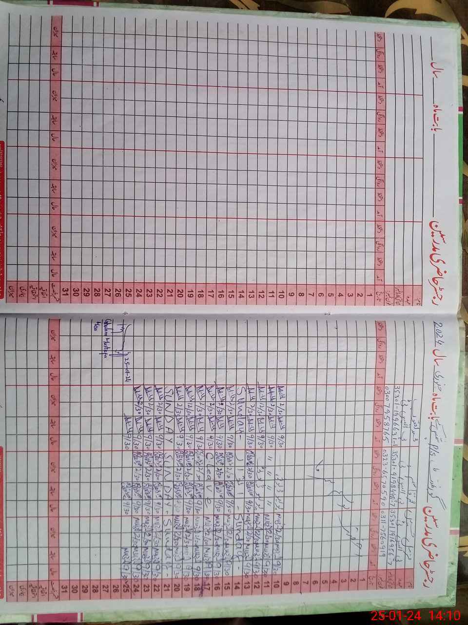 | CNIC | Full Name | Designation | R/C | Absence During Last Calender Month |