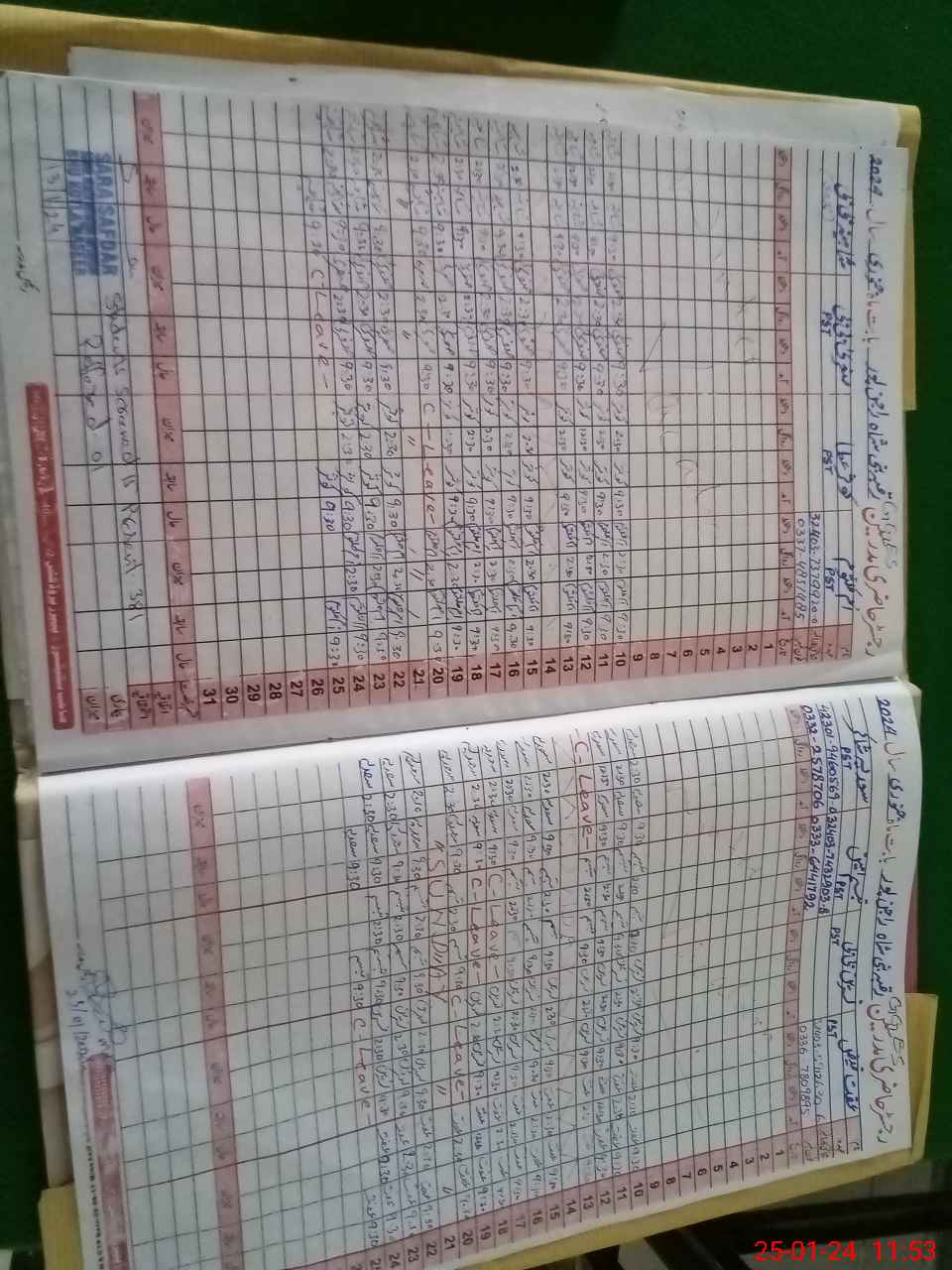| CNIC | Full Name | Designation | R/C | Absence During Last Calender Month |