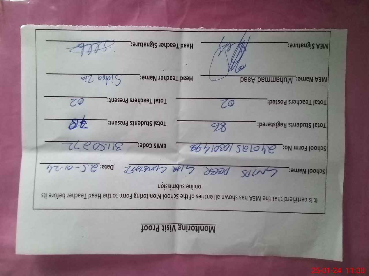 | EMIS Code: 31150272 | Name of School: GMPS PIR GHAR CHISHTI | |||