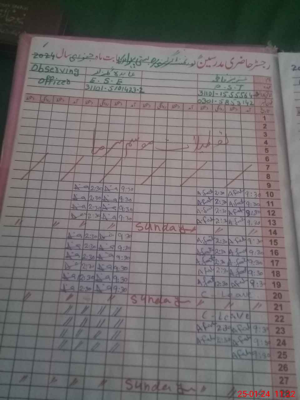 | Name: Su**** Aj**** Designation: (School Headmaster's/Headmistress's) PST Phone/Cell Number: 03**** |