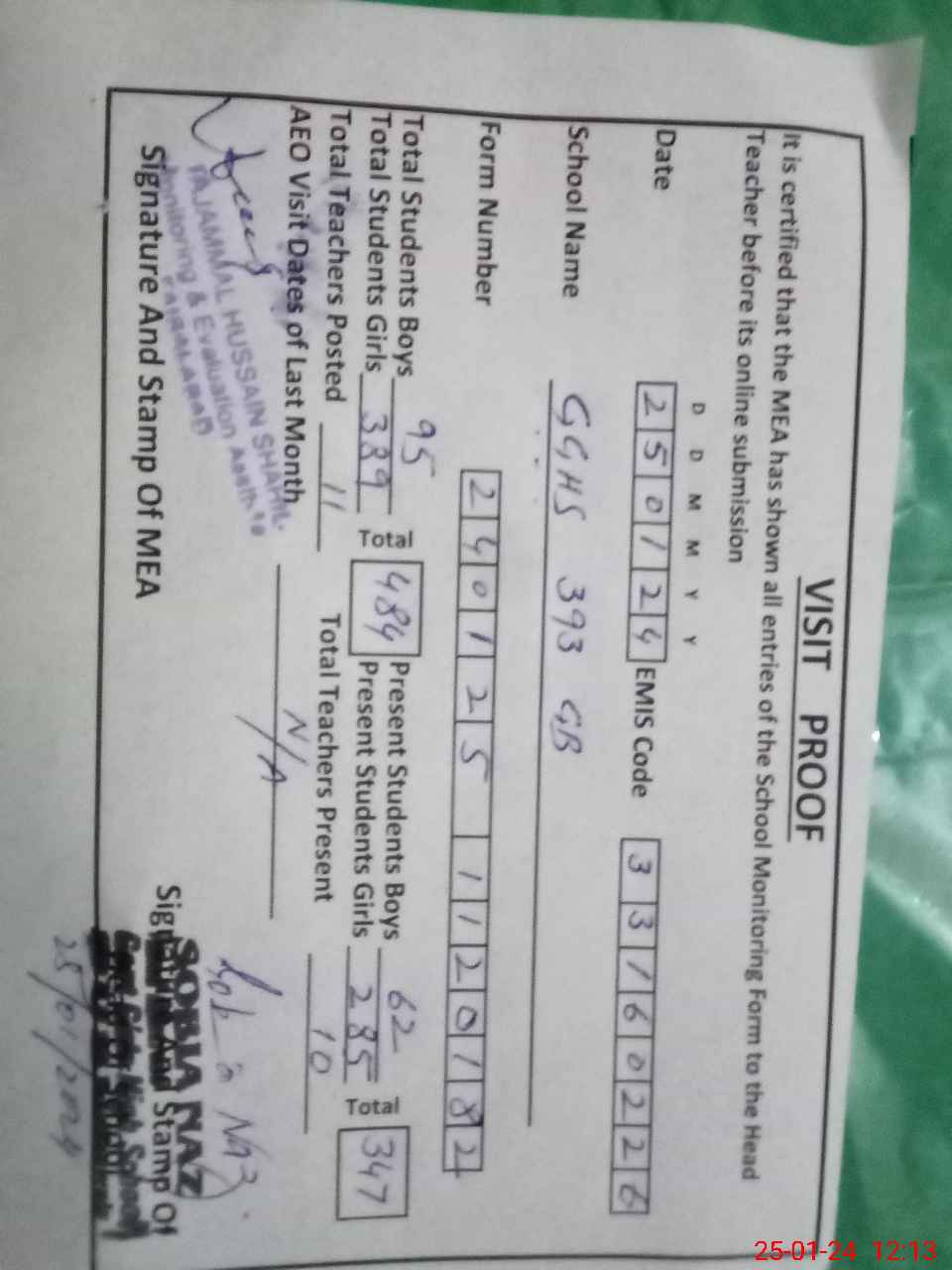 | EMIS Code: 33160226 | Name of School: GGHS CHAK 393 GB TANDLIANWALA | |||