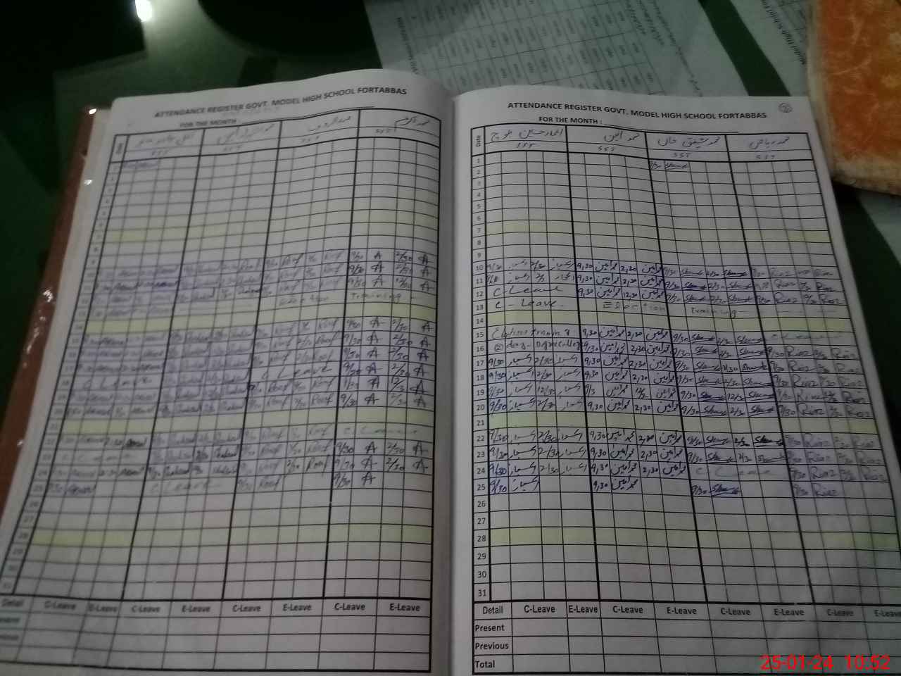 | CNIC | Full Name | Designation | R/C | Absence During Last Calender Month |