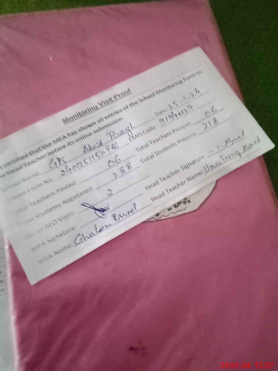 | Attendance Register | Head Teacher | MEA with School | Visit Proof |