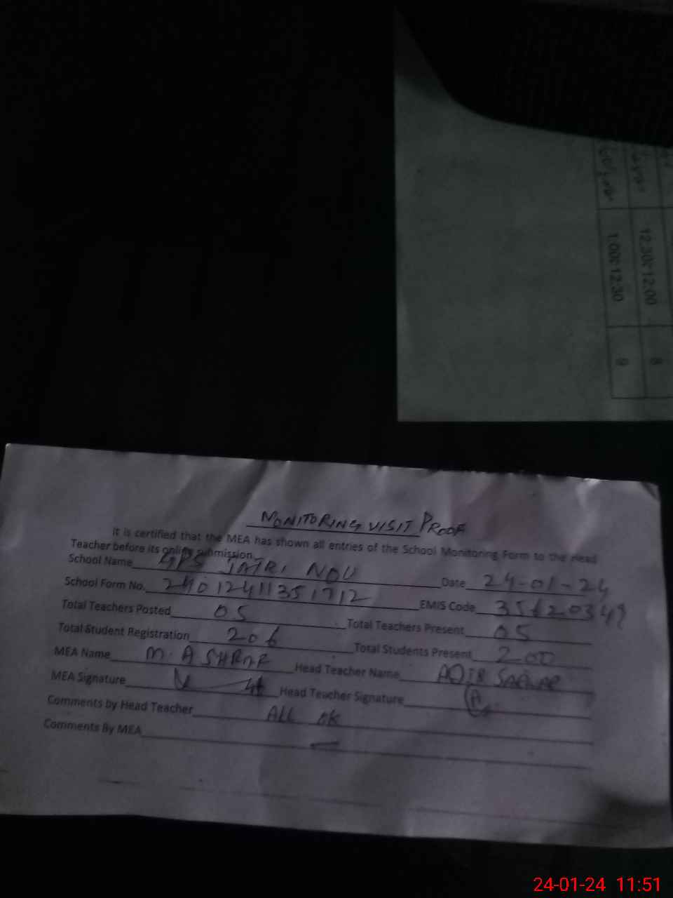 | Certified that this School was Inspected by the Undersigned MEA/DMO Today and the Information Stated Above is as Per Record. | |||||