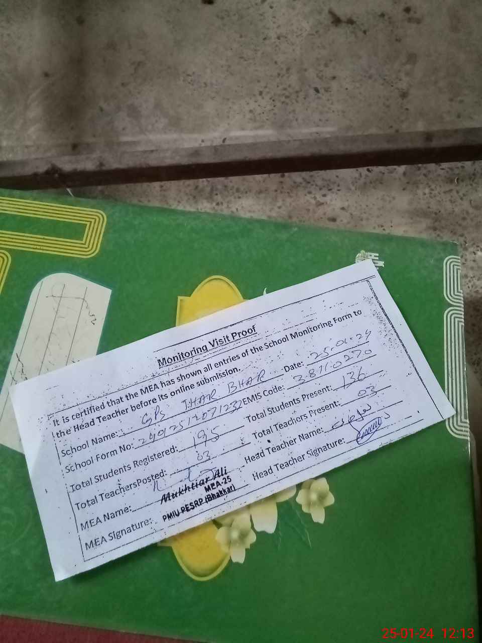 | EMIS Code: 38110270 | Name of School: GPS JHAR BHAR | |||