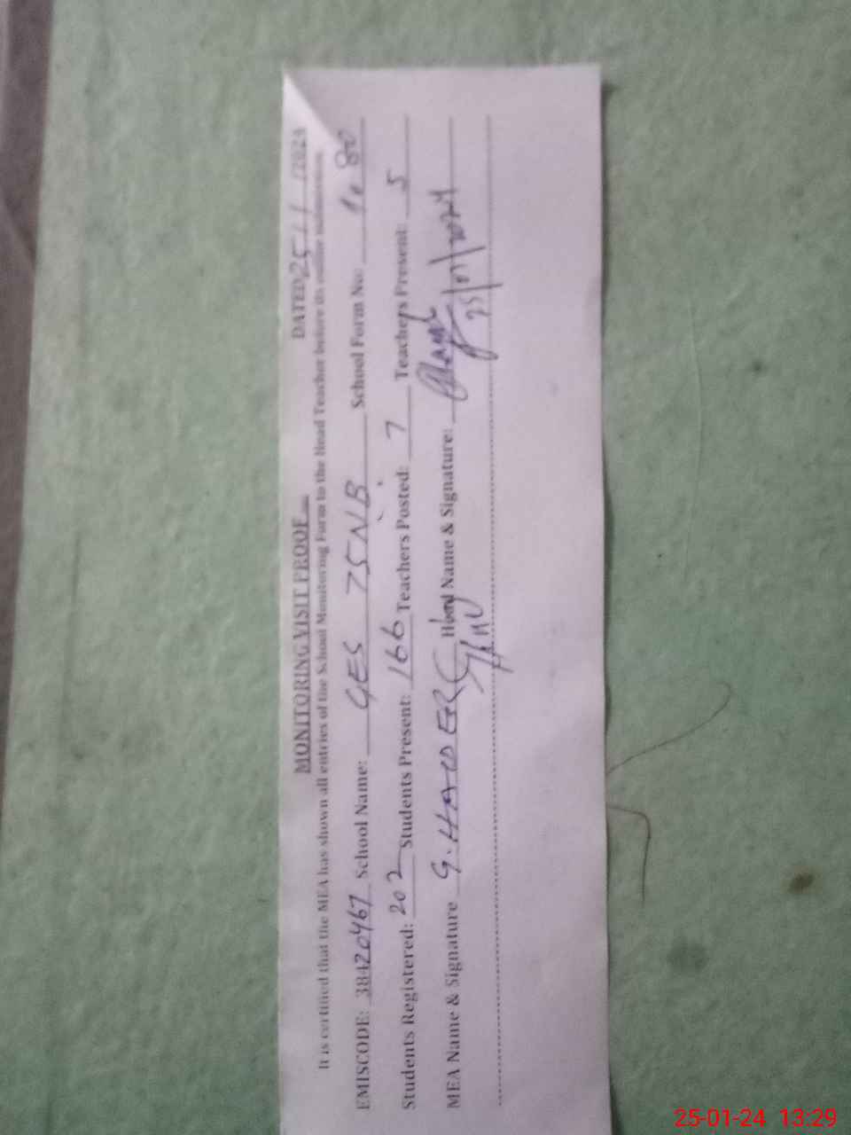 | Monitoring Date: 25-01-2024 | Start Time: 25-01-2024 01:00 PM | End Time: 25-01-2024 01:29 PM | Name of MEA: GH**** HA**** | |