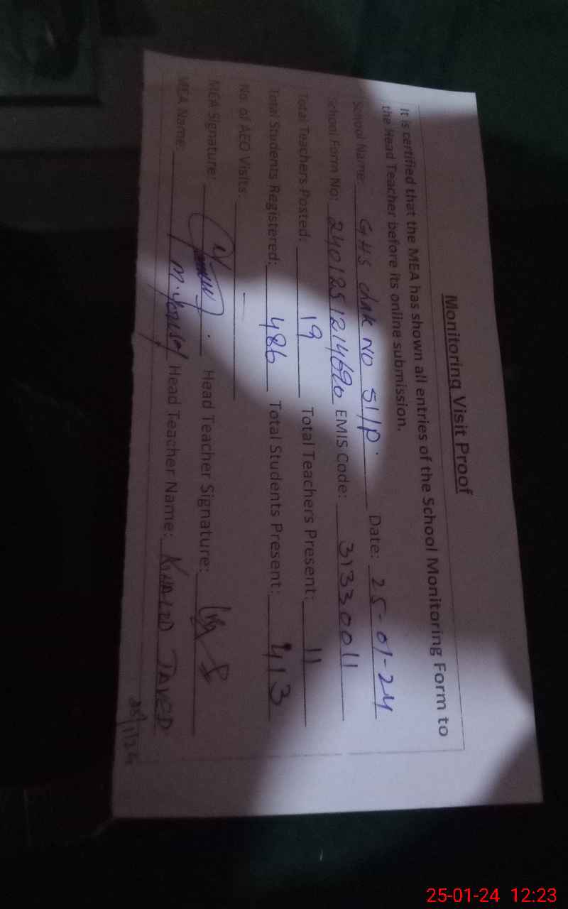 | Attendance Register | Head Teacher | MEA with School | Visit Proof |