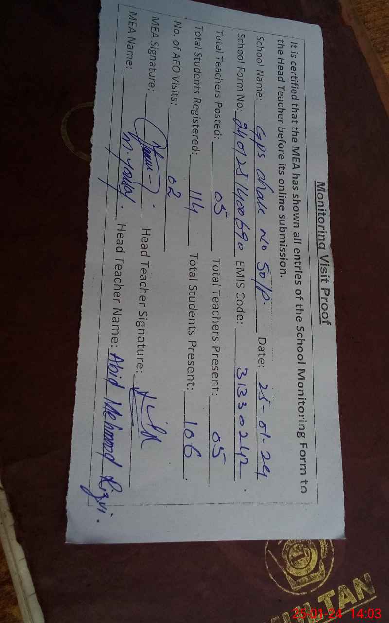 | EMIS Code: 31330242 | Name of School: GPS CHAK 50/P | |||