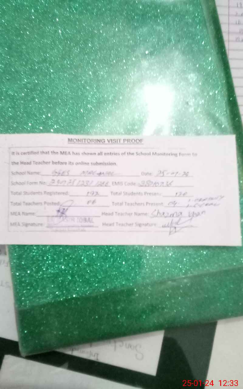 | Certified that this School was Inspected by the Undersigned MEA/DMO Today and the Information Stated Above is as Per Record. | |||||