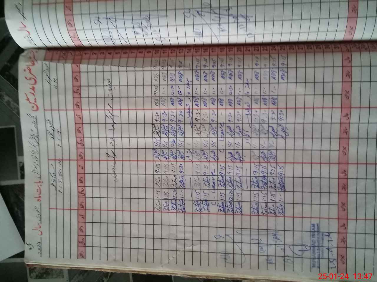 | CNIC | Full Name | Designation | R/C | Absence During Last Calender Month |