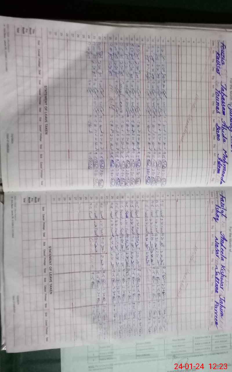 | CNIC | Full Name | Designation | R/C | Absence During Last Calender Month |