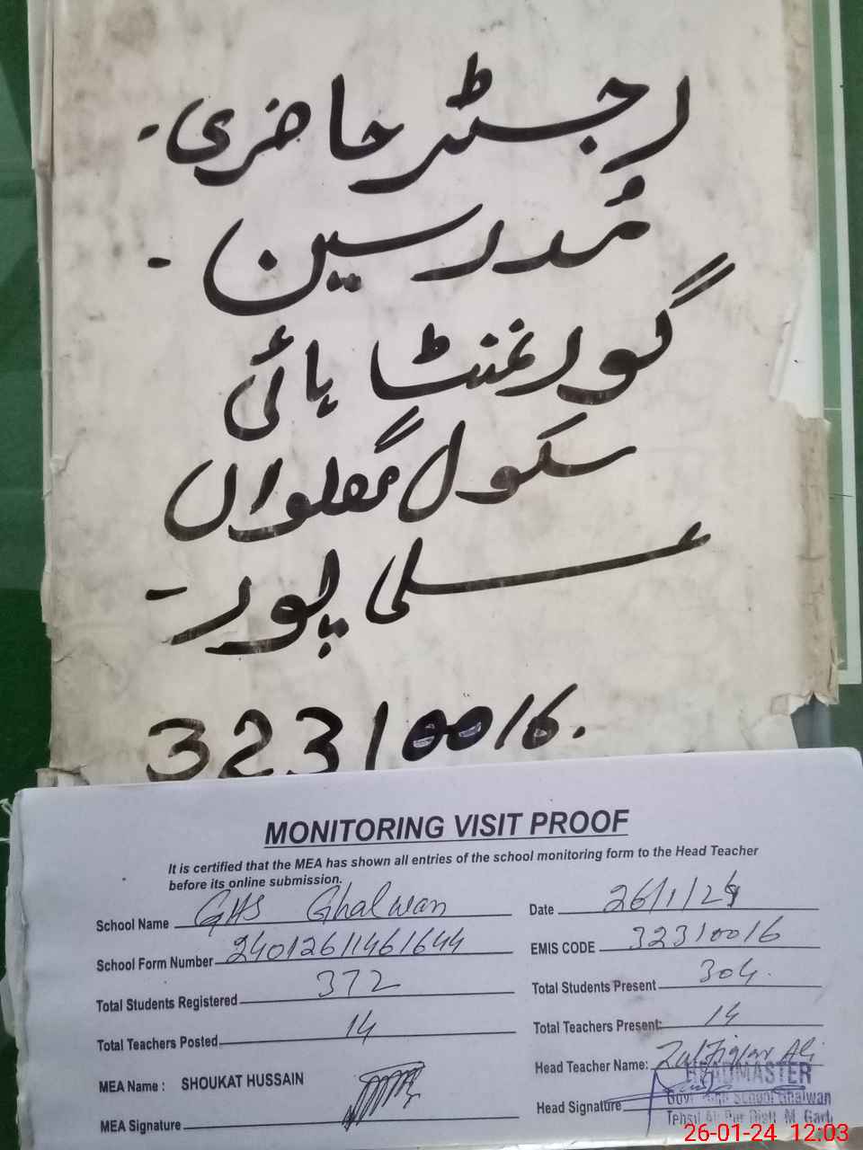 | EMIS Code: 32310016 | Name of School: GHS GHALWAN | |||