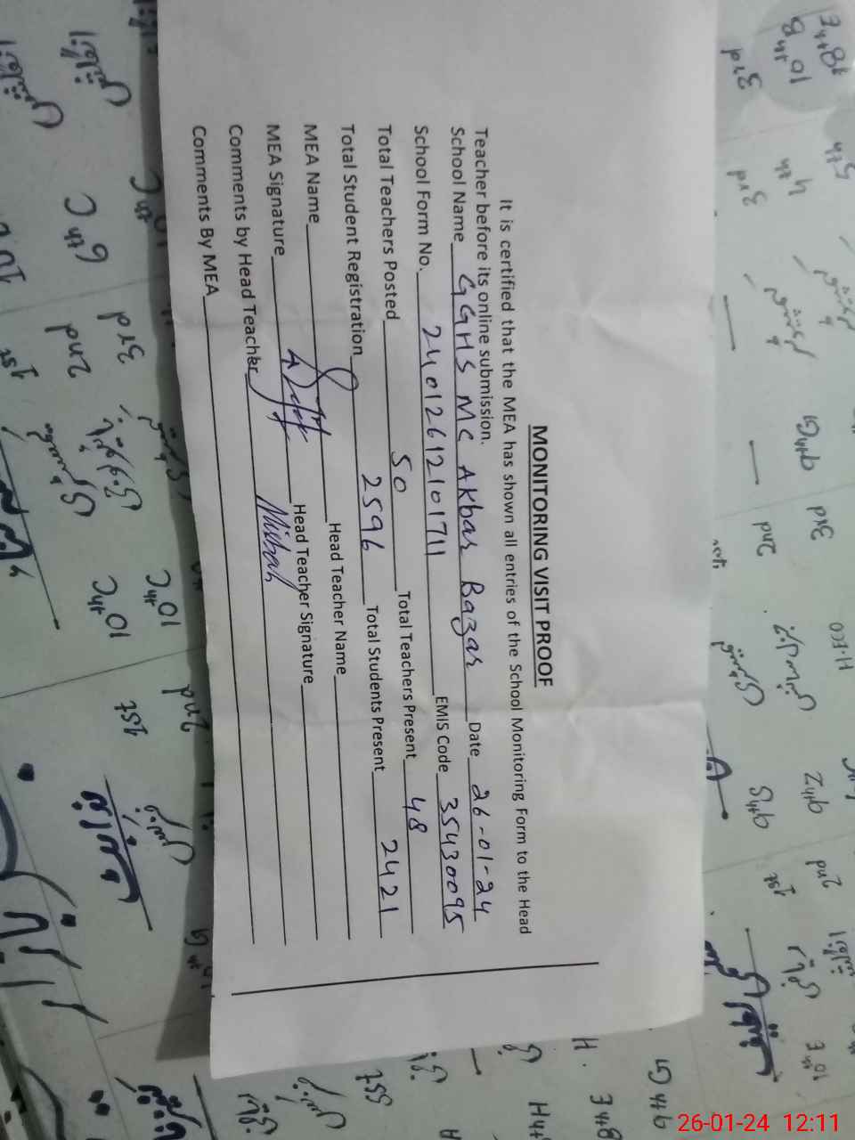| EMIS Code: 35430095 | Name of School: GGHS MC MODEL AKBER BAZAR SHEIKHUPURA | |||