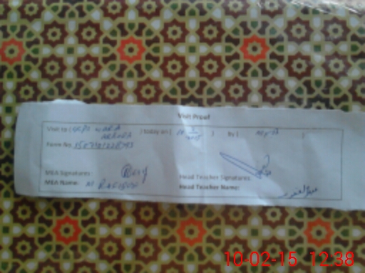 | Attendance Register | Head Teacher | MEA with School | Visit Proof |