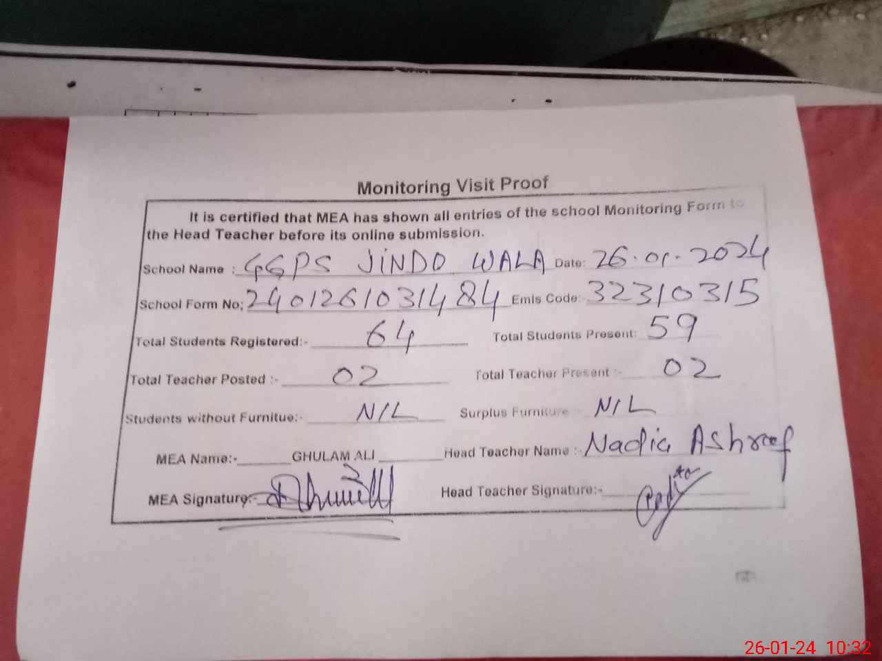 | EMIS Code: 32310315 | Name of School: GGPS JINDO WALA | |||