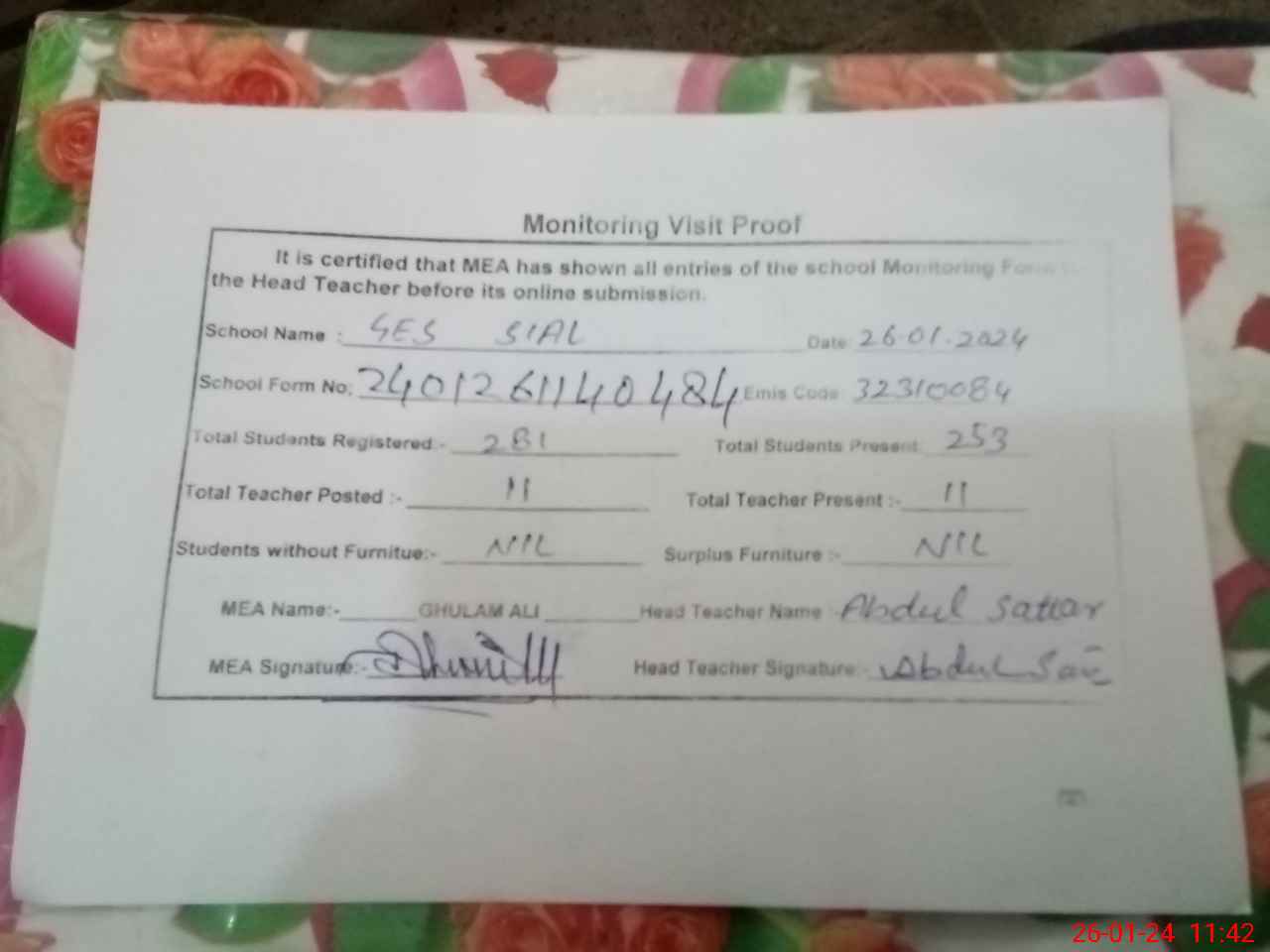| EMIS Code: 32310084 | Name of School: GES SIAL | |||