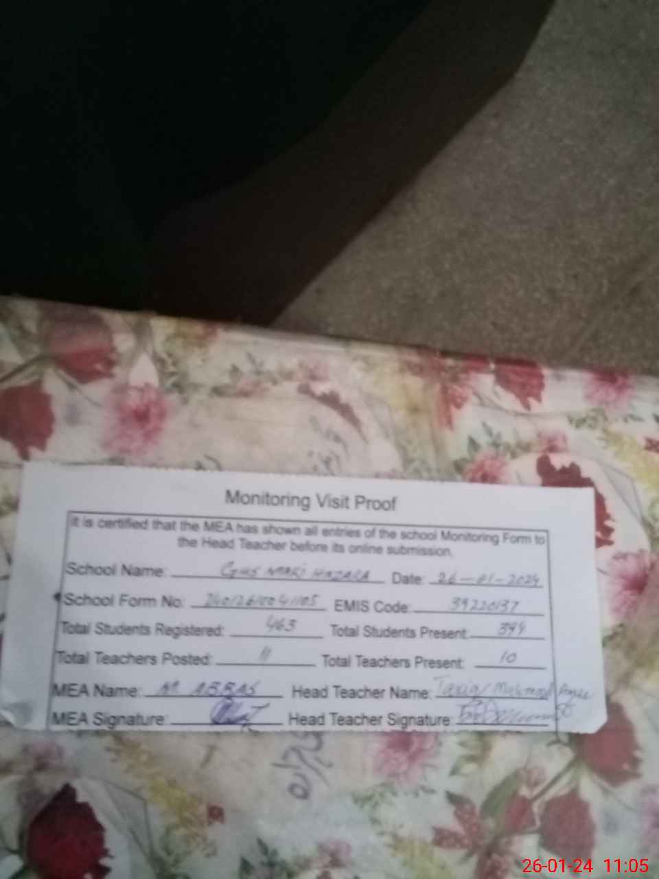 | EMIS Code: 39220137 | Name of School: GHS MARI HAZARA | |||