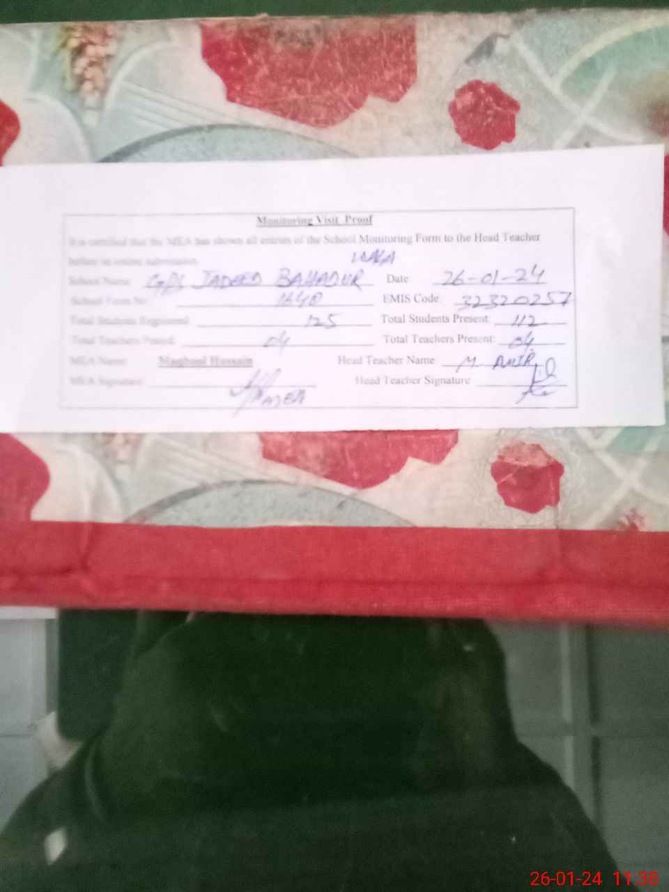 | EMIS Code: 32320257 | Name of School: GPS JADEED BAHADUR WALA | |||