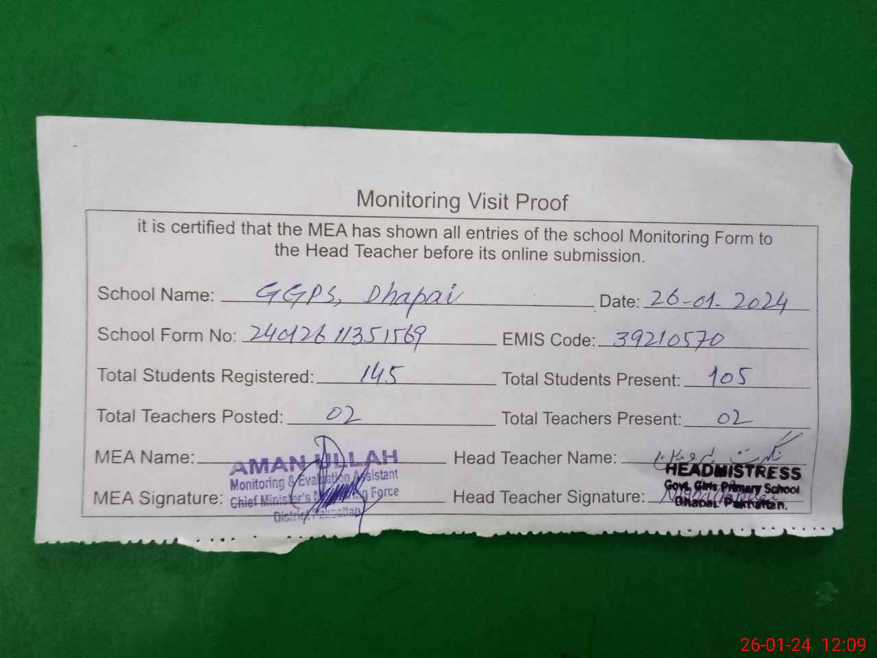 | EMIS Code: 39210570 | Name of School: GGPS DHAPAI | |||
