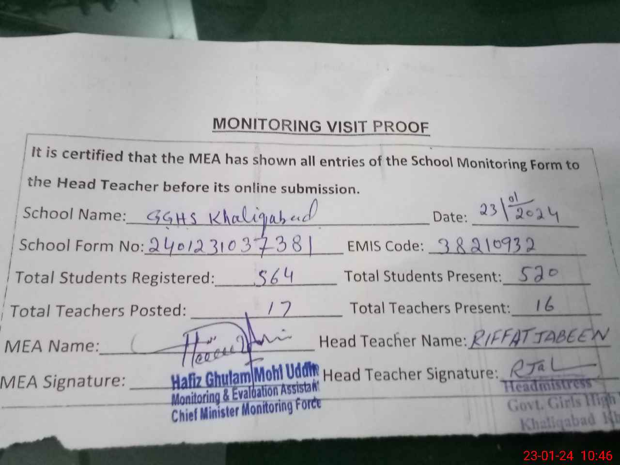 | EMIS Code: 38210932 | Name of School: GGHSS KHALIQABAD | |||