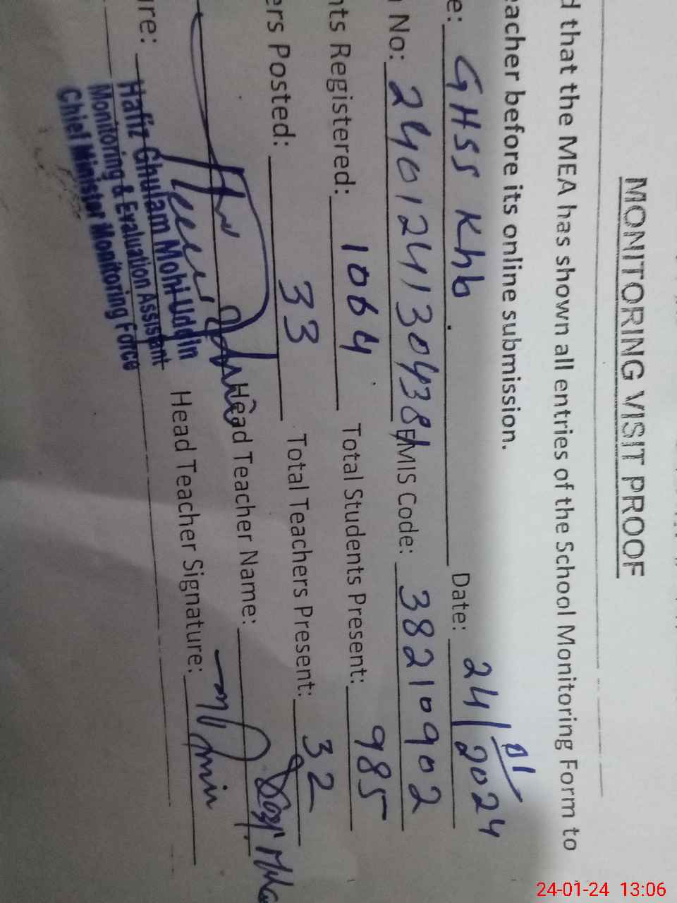 | EMIS Code: 38210902 | Name of School: GHSS KHUSHAB | |||