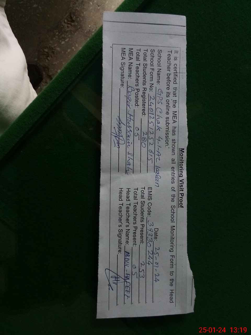 | Name: Ha**** Ab**** Ha**** Designation: (School Headmaster's/Headmistress's) PTC/JV Phone/Cell Number: 03**** |